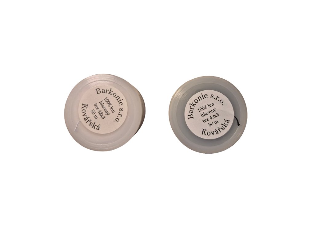 Režná nit návin v kulaté krabičce, návin 50m. 100% len. Velmi silná nit, určená na ruční šití.
